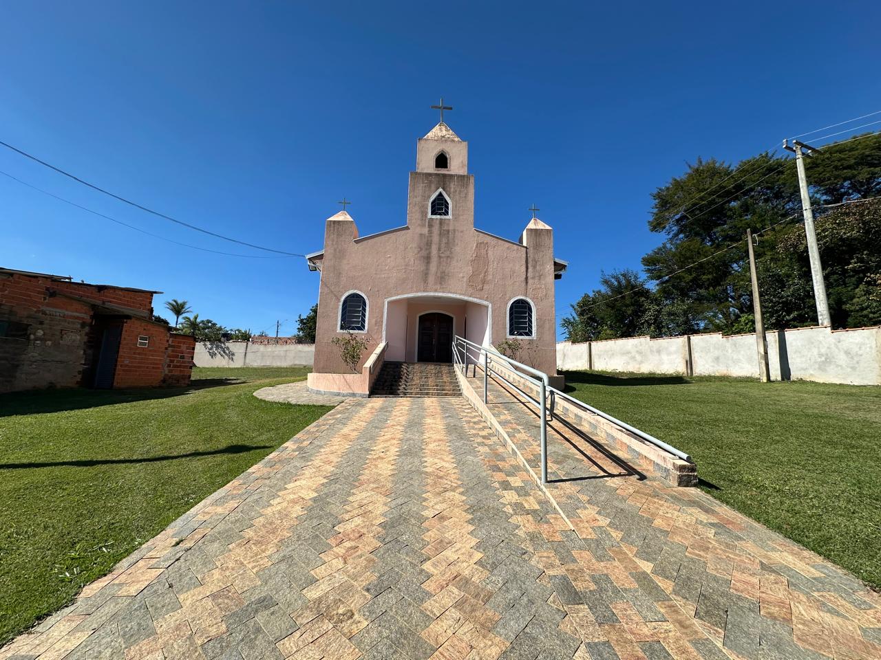 Na primeira etapa foi feito o alicerce, com fundos arrecadados nas festas realizadas próximo a escolinha do bairro. Nessa fase inicial foi grande a participação dos Srs.: Sidnei/Nilson/Suia/Adinelo/ Edson. Terminado o alicerce, por uma série de dificuldades, a construção ficou parada por algum tempo, até que os proprietários de um sítio no bairro que moravam em Campinas, o Sr. Sebastião, e Dona Geni, procuraram o Sr. Sidnei para ajudar financeiramente na construção. Essa ajuda foi muito importante, deixando a capela levantada, coberta e rebocada e ficando em condições de ser utilizada. A planta da construção foi projetada pelo Sr. Sebastião.