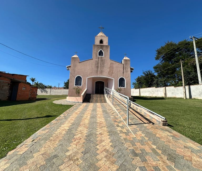 A primeira missa foi celebrada pelo padre César no primeiro domingo de dezembro no ano de 2006, com a participação da comunidade de Nossa Senhora de Fátima, coordenada pelo Nelson. Por ser um bairro de zona rural e com acesso difícil, fazer uma grande festa era um desafio, mas essa festa acabou acontecendo em 22/05/2007 com Romaria a cavalo e benção das rosas e dos cavaleiros. Os festeiros e organizadores foram: Sr. Sebastião –Sidnei –Suia –Edson -Nilson (ganso) -Fernando Cimart. Até hoje a festa é reconhecida por todos e cresce a cada ano.